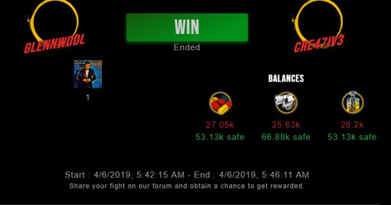 Check my latest fight ! glennwool vs cre47iv3glennwool (29)in #drugwars-fight • 7 years ago #gaming #fight #dw