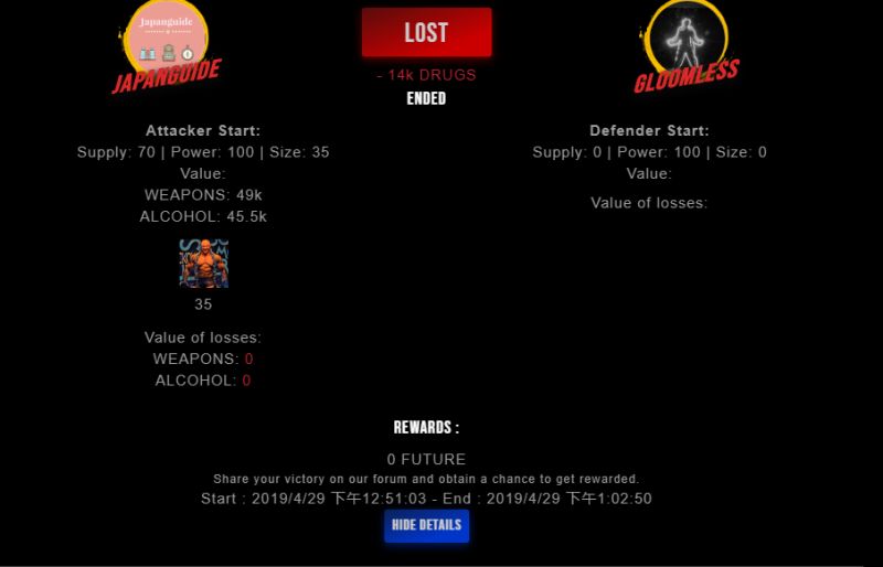 Check my latest fight ! japanguide vs gloomlessgloomless (29)in #drugwars-fight • 7 years ago #gaming #fight #dw