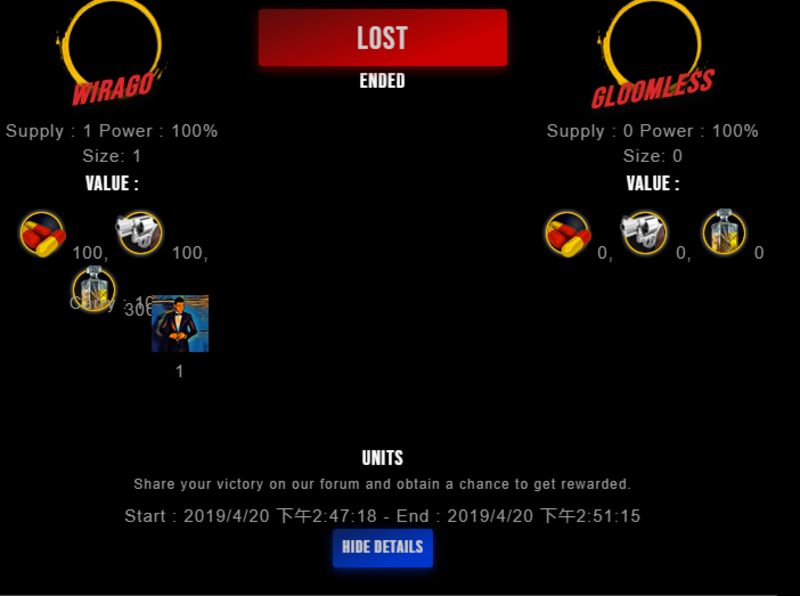 Congratulations @gloomless ! Your fight received an upvote of 9% from the Dealer as incentive for your activity and as a gratitude for your support to the game.