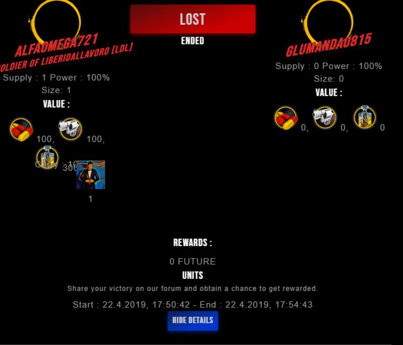 Check my latest fight ! alfaomega721 vs glumanda0815glumanda0815 (33)in #drugwars-fight • 7 years ago #gaming #fight #dw