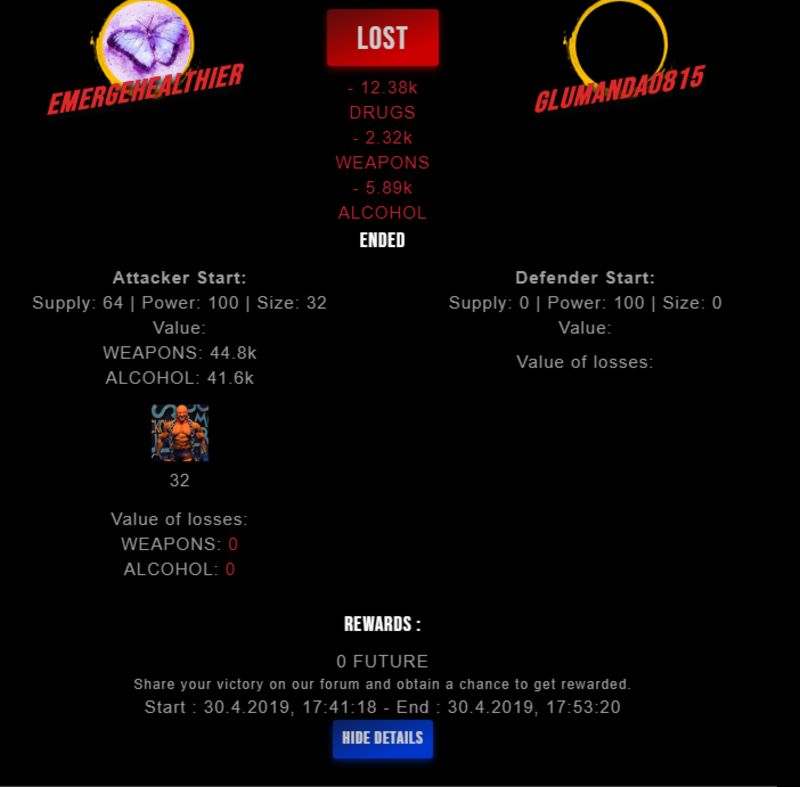 Check my latest fight ! emergehealthier vs glumanda0815glumanda0815 (33)in #drugwars-fight • 7 years ago #gaming #fight #dw
