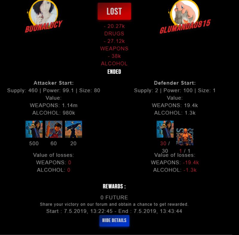 Check my latest fight ! buonalucy vs glumanda0815glumanda0815 (33)in #drugwars-fight • 7 years ago #gaming #fight #dw