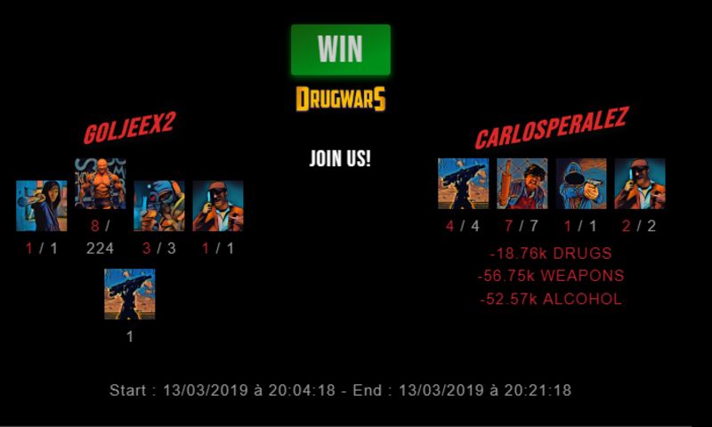 Check my latest fight ! goljeex2 vs carlosperalezgoljeex2 (38)in #drugwars-fight • 7 years ago #gaming #fight #dw