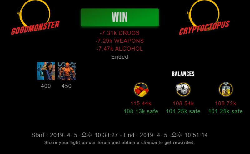 Check my latest fight ! goodmonster vs cryptoctopusgoodmonster (37)in #drugwars-fight • 7 years ago #gaming #fight #dw