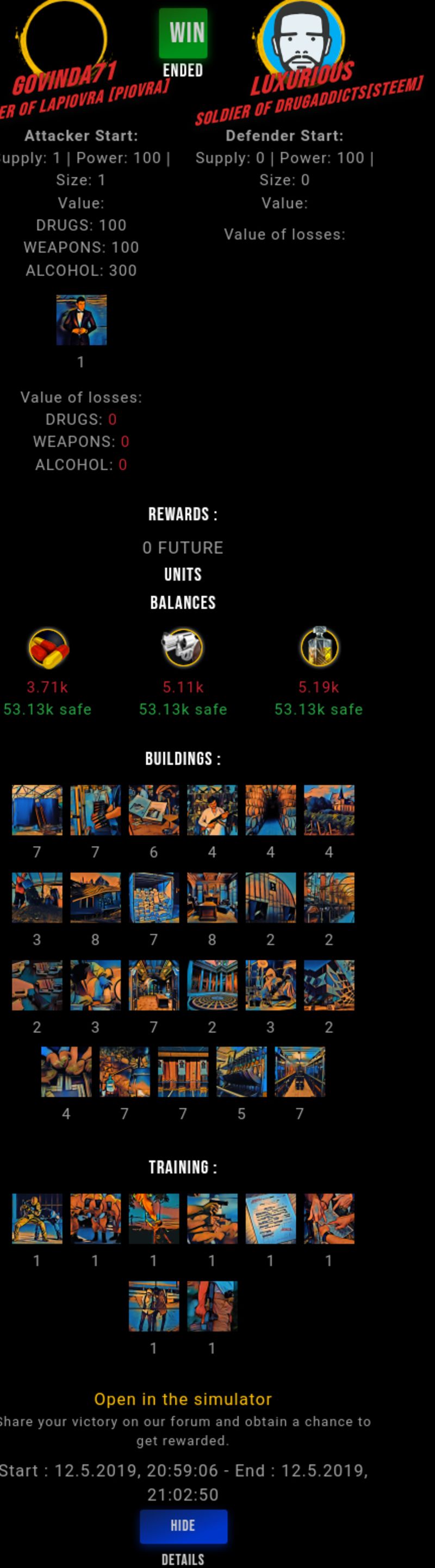 Check my latest fight ! govinda71 vs luxuriousgovinda71 (62)in #drugwars-fight • 7 years ago #gaming #fight #dw