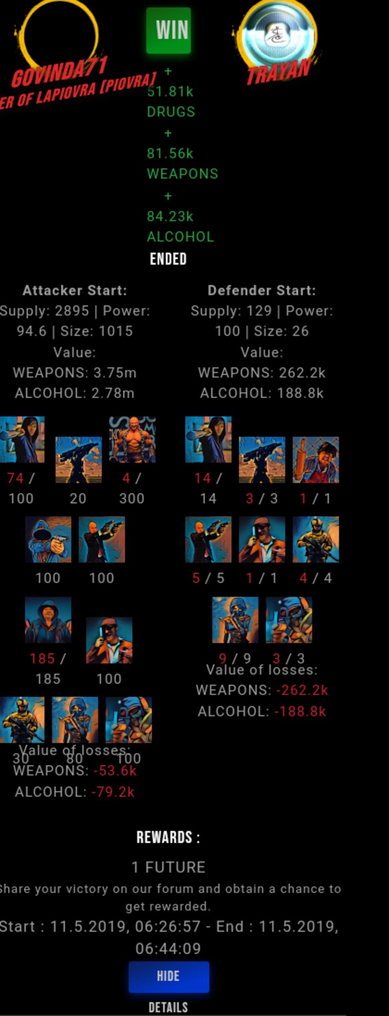 Check my latest fight ! govinda71 vs trayangovinda71 (62)in #drugwars-fight • 7 years ago #gaming #fight #dw