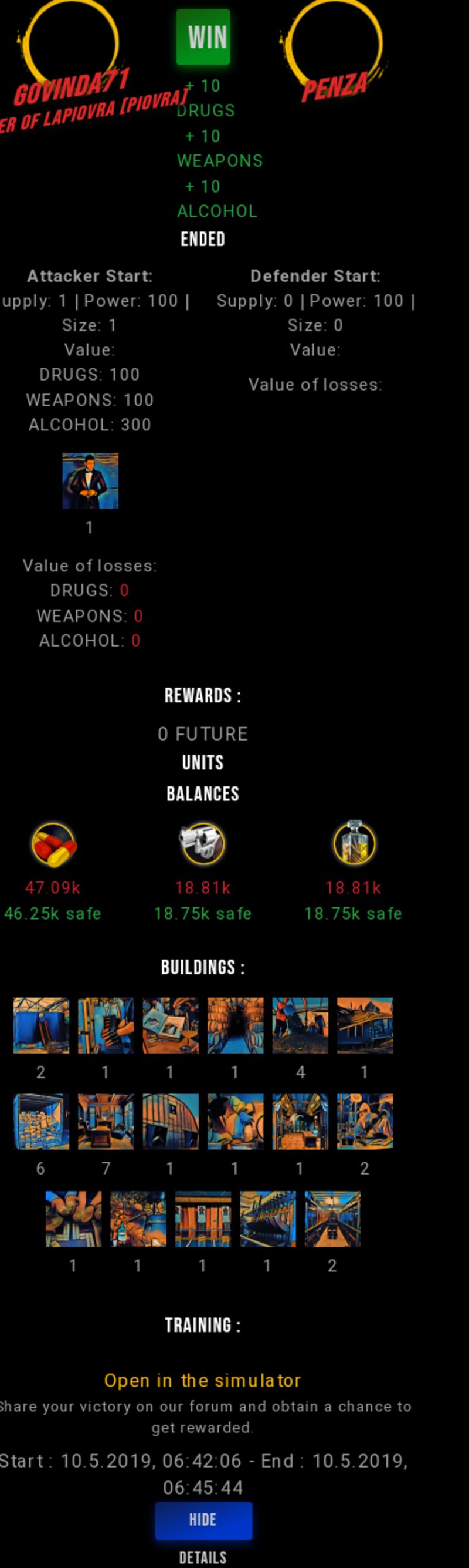 Check my latest fight ! govinda71 vs penzagovinda71 (62)in #drugwars-fight • 7 years ago #gaming #fight #dw