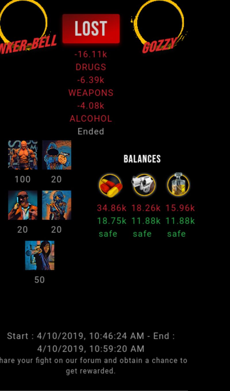 Check my latest fight ! tinker-bell vs gozzygozzy (52)in #drugwars-fight • 7 years ago #gaming #fight #dw