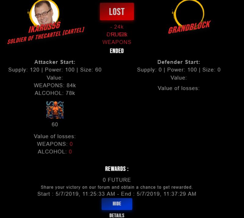 Congratulations @grandblock ! Your fight received an upvote of 2% from the King Dealer as incentive for your activity and as a gratitude for your support to the game.