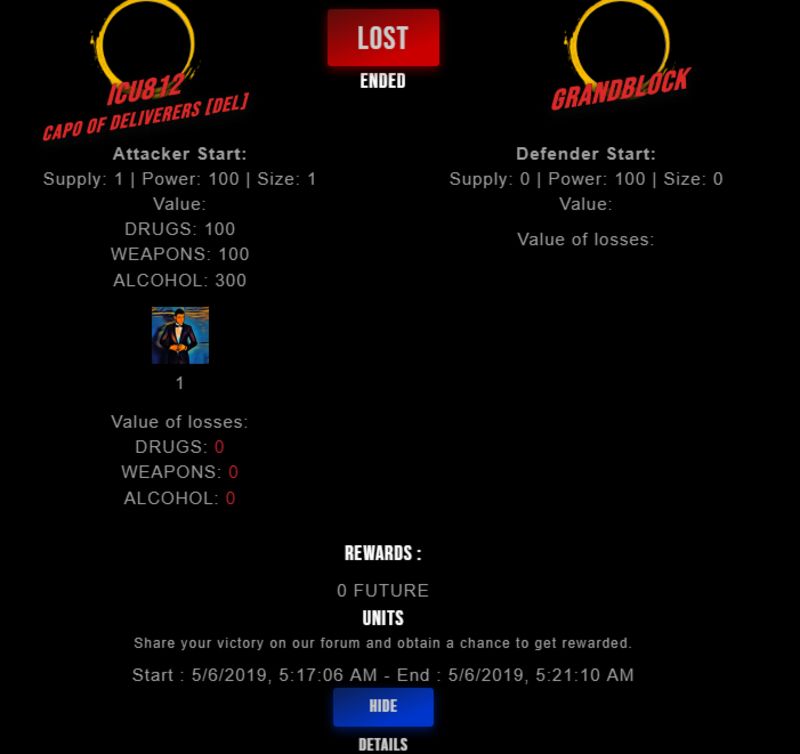 Congratulations @grandblock ! Your fight received an upvote of 2% from the King Dealer as incentive for your activity and as a gratitude for your support to the game.