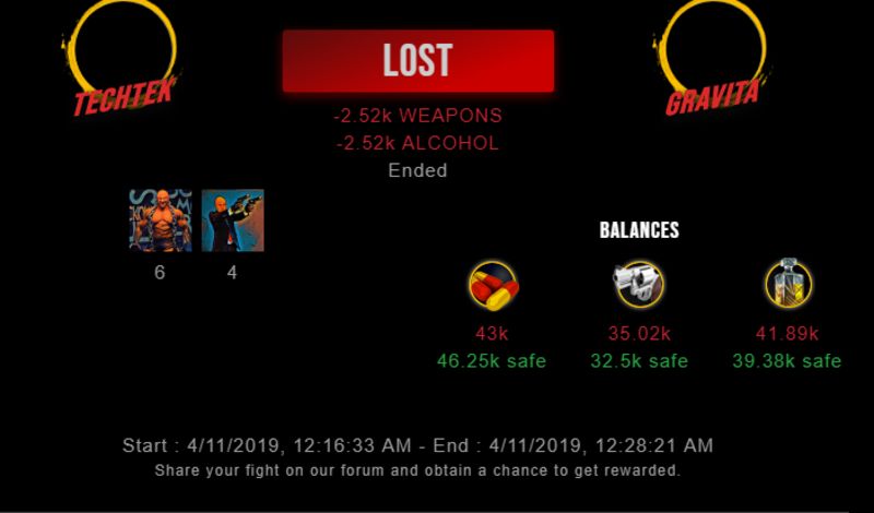 Check my latest fight ! techtek vs gravitagravita (20)in #drugwars-fight • 7 years ago #gaming #fight #dw
