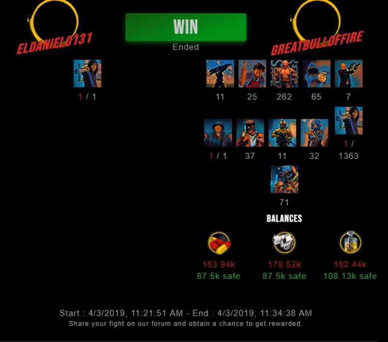 Check my latest fight ! eldaniel0131 vs greatbulloffiregreatbulloffire (40)in #drugwars-fight • 7 years ago #gaming #fight #dw