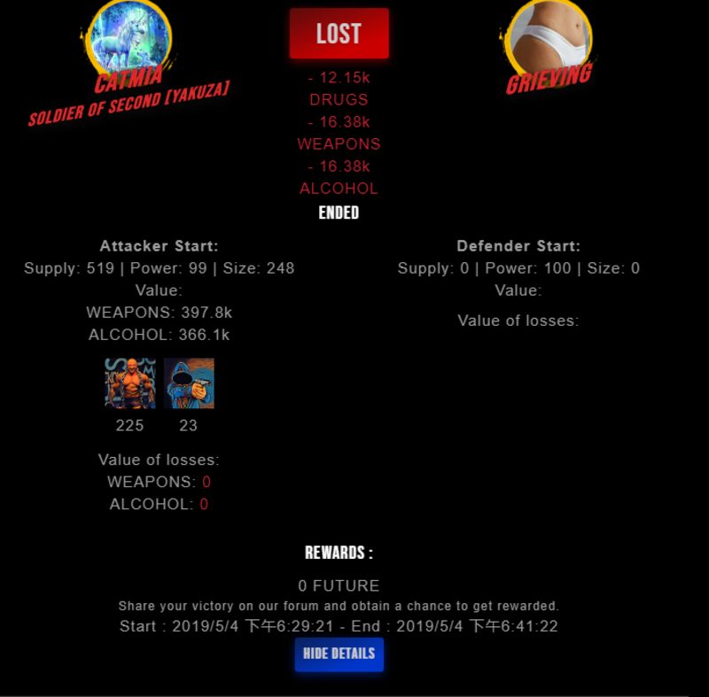 Check my latest fight ! catmia vs grievinggrieving (26)in #drugwars-fight • 7 years ago #gaming #fight #dw