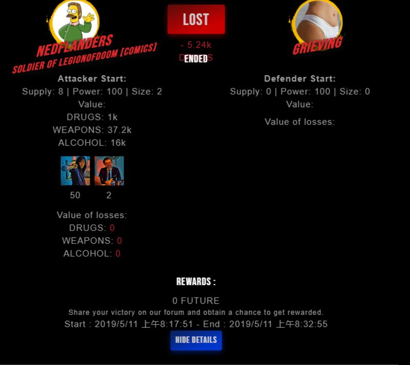 Check my latest fight ! nedflanders vs grievinggrieving (26)in #drugwars-fight • 7 years ago #gaming #fight #dw