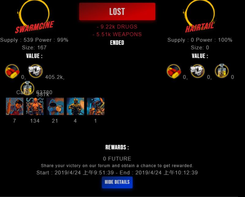 Check my latest fight ! swarmcine vs hairtailhairtail (28)in #drugwars-fight • 7 years ago #gaming #fight #dw