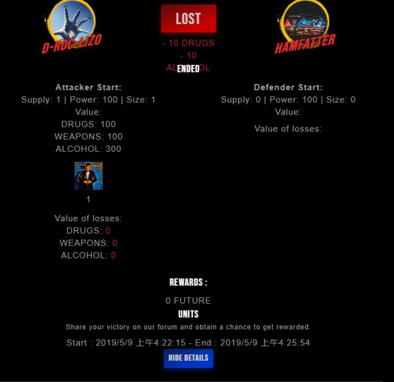 Check my latest fight ! d-roc-lizo vs hamfatterhamfatter (29)in #drugwars-fight • 7 years ago #gaming #fight #dw