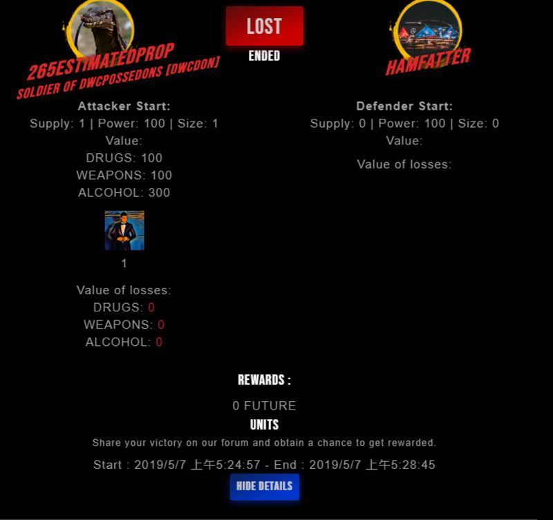 Check my latest fight ! 265estimatedpr0p vs hamfatterhamfatter (29)in #drugwars-fight • 7 years ago #gaming #fight #dw