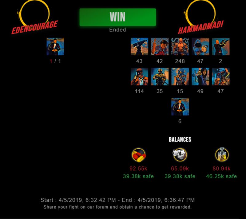 Check my latest fight ! edencourage vs hammadmadihammadmadi (57)in #drugwars-fight • 7 years ago #gaming #fight #dw