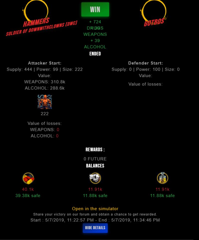 Congratulations @hammers ! Your fight received an upvote of 0.8% from the King Dealer as incentive for your activity and as a gratitude for your support to the game.