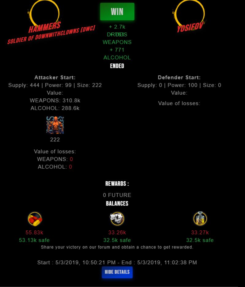 Congratulations @hammers ! Your fight received an upvote of 0.8% from the King Dealer as incentive for your activity and as a gratitude for your support to the game.