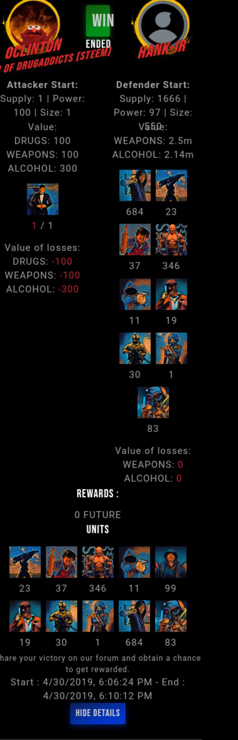 Check my latest fight ! oclinton vs hank-jrhank-jr (49)in #drugwars-fight • 7 years ago #gaming #fight #dw