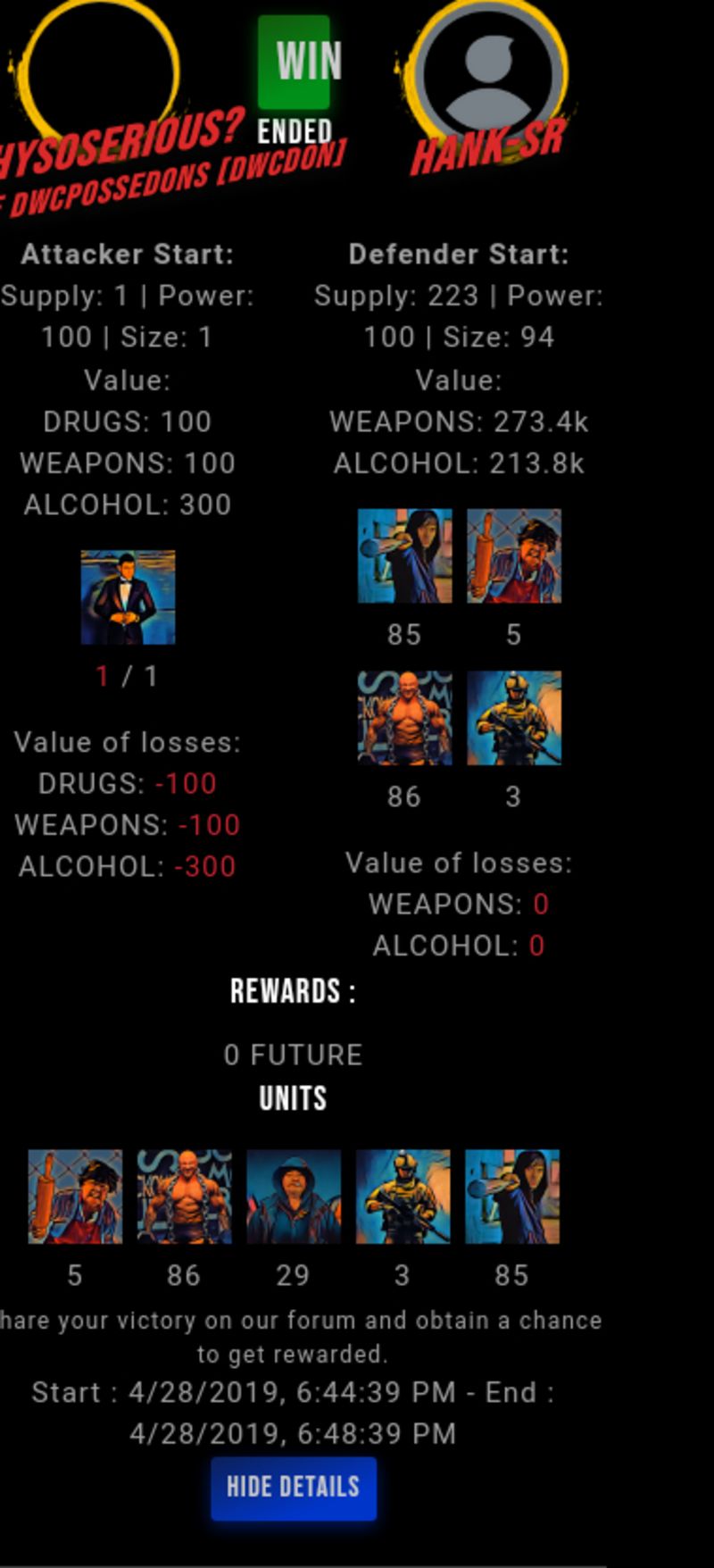 Check my latest fight ! whysoserious? vs hank-srhank-sr (48)in #drugwars-fight • 7 years ago #gaming #fight #dw
