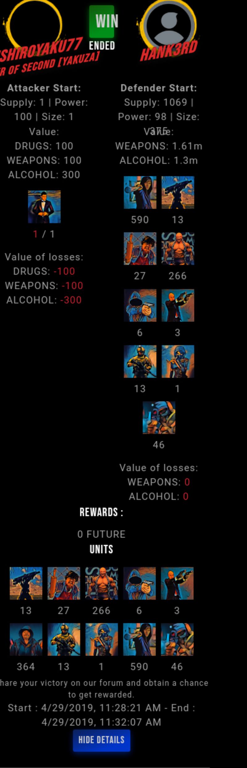 Check my latest fight ! hishiroyaku77 vs hank3rdhank3rd (45)in #drugwars-fight • 7 years ago #gaming #fight #dw