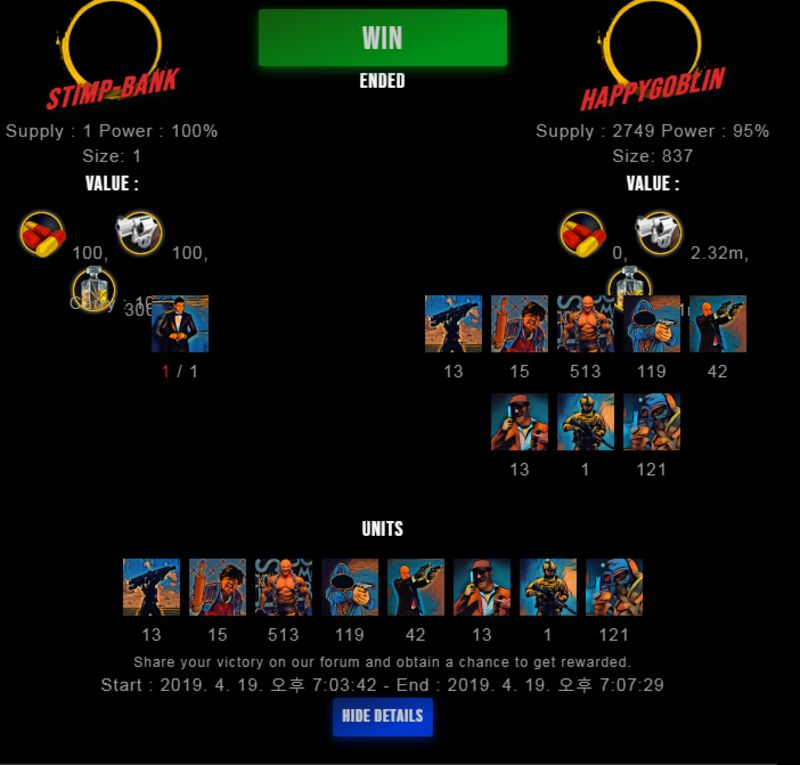 Congratulations @happygoblin ! Your fight received an upvote of 0.6% from the King Dealer as incentive for your activity and as a gratitude for your support to the game.