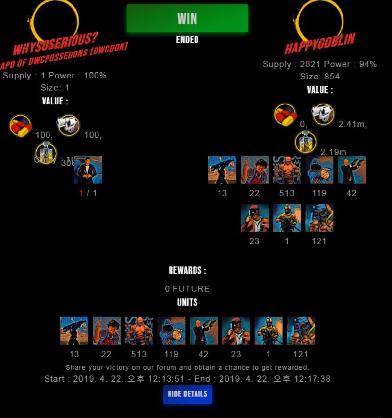 Congratulations @happygoblin ! Your fight received an upvote of 0.6% from the King Dealer as incentive for your activity and as a gratitude for your support to the game.