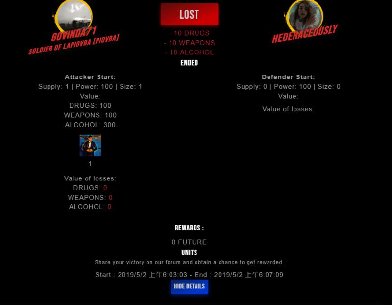 Check my latest fight ! govinda71 vs hederaceouslyhederaceously (25)in #drugwars-fight • 7 years ago #gaming #fight #dw