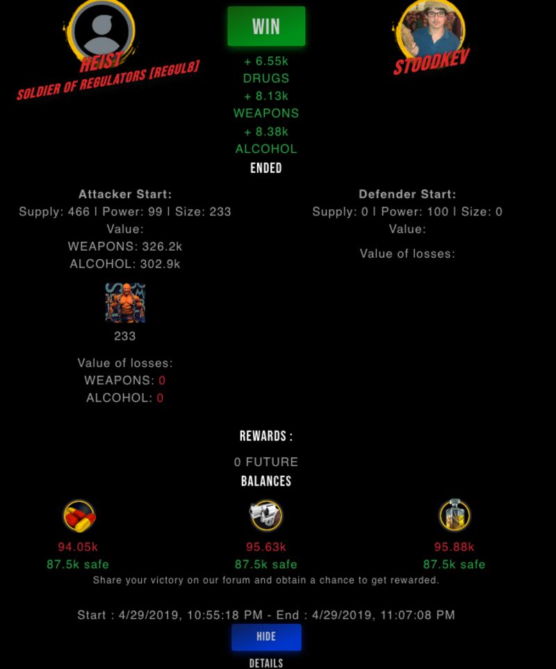 Check my latest fight ! heist vs stoodkevheist (49)in #drugwars-fight • 7 years ago #gaming #fight #dw