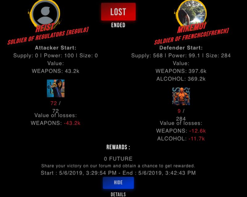 Check my latest fight ! heist vs mikemoiheist (49)in #drugwars-fight • 7 years ago #gaming #fight #dw