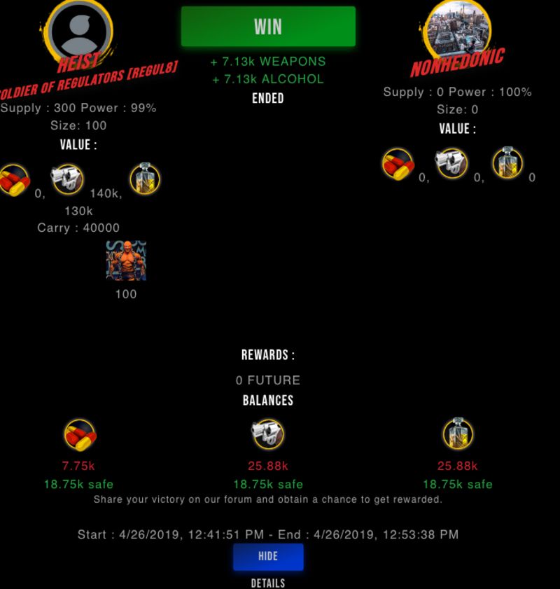 Check my latest fight ! heist vs nonhedonicheist (49)in #drugwars-fight • 7 years ago #gaming #fight #dw
