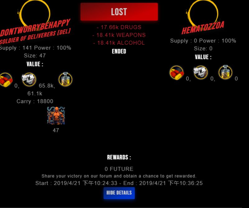 Check my latest fight ! dontworrybehappy vs hematozzoahematozzoa (25)in #drugwars-fight • 7 years ago #gaming #fight #dw