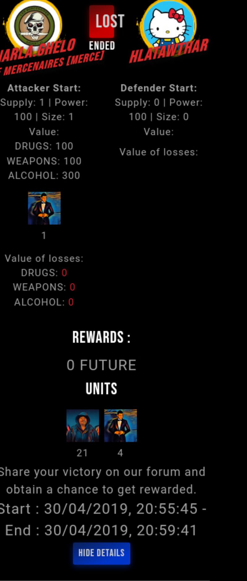 Congratulations @hlatawthar ! Your fight received an upvote of 9% from the Dealer as incentive for your activity and as a gratitude for your support to the game.
