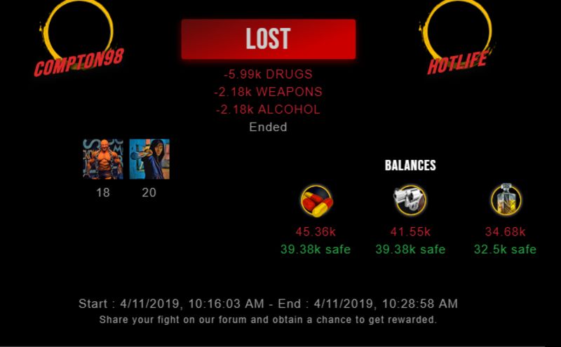 Check my latest fight ! compton98 vs hotlifehotlife (25)in #drugwars-fight • 7 years ago #gaming #fight #dw