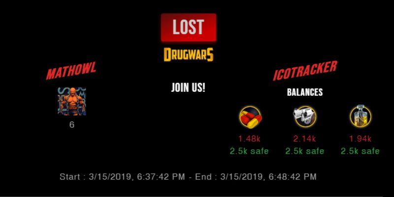 Check my latest fight ! mathowl vs icotrackericotracker (46)in #drugwars-fight • 7 years ago #gaming #fight #dw
