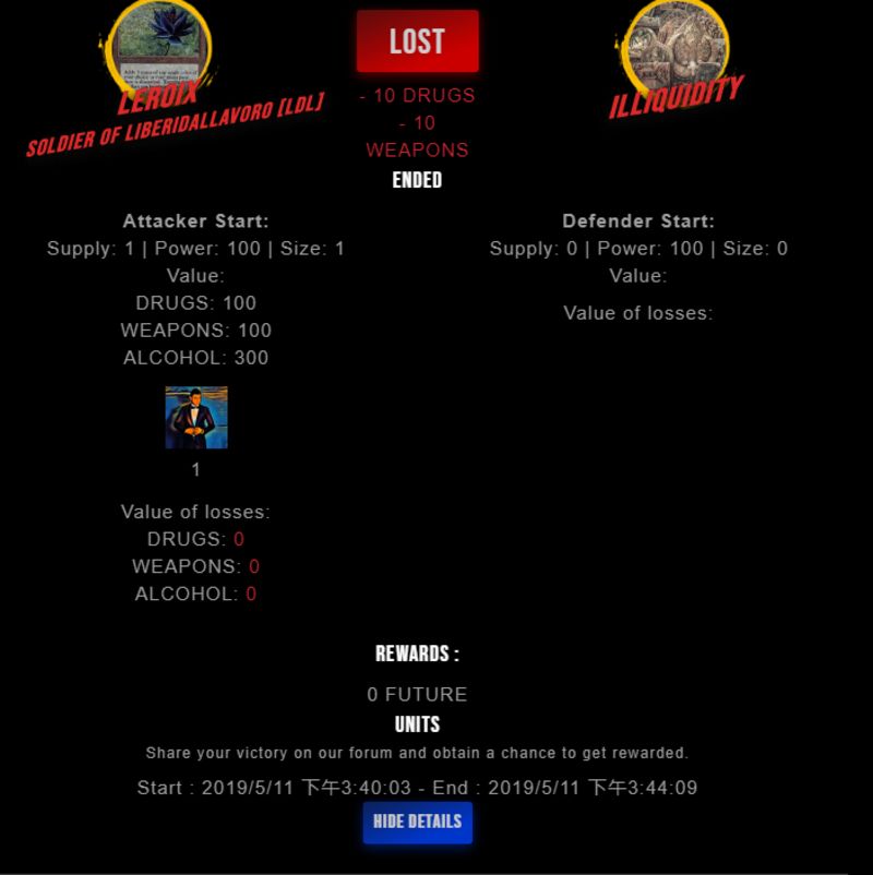 Congratulations @illiquidity ! Your fight received an upvote of 10% from the Dealer as incentive for your activity and as a gratitude for your support to the game.