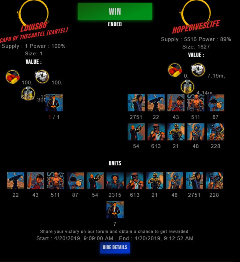 Check my latest fight ! louis88 vs hopegiveslifeiluvwvmountains (41)in #drugwars-fight • 7 years ago #gaming #fight #dw