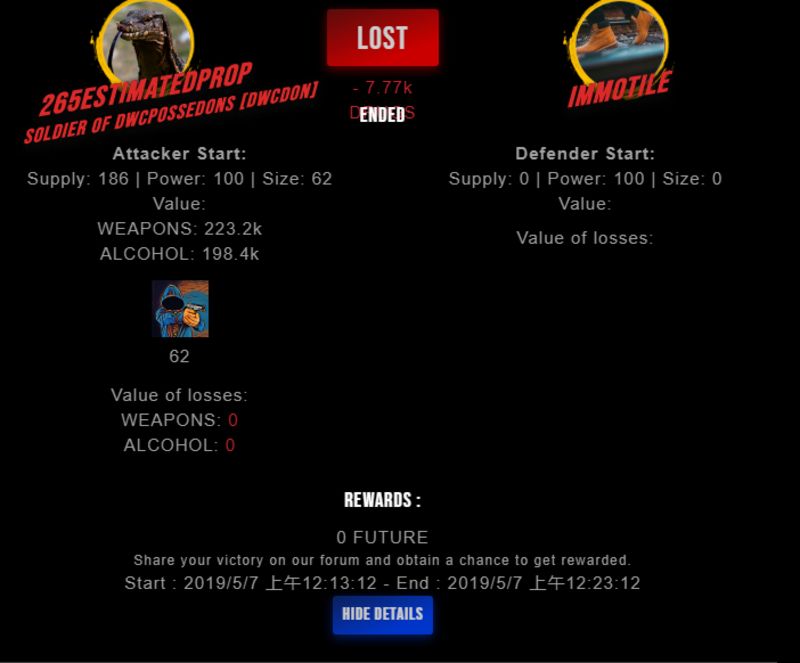Congratulations @immotile ! Your fight received an upvote of 10% from the Dealer as incentive for your activity and as a gratitude for your support to the game.