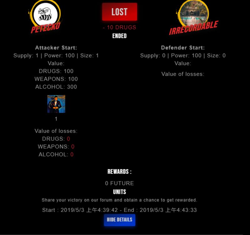 Check my latest fight ! petecko vs irrecordableirrecordable (26)in #drugwars-fight • 7 years ago #gaming #fight #dw