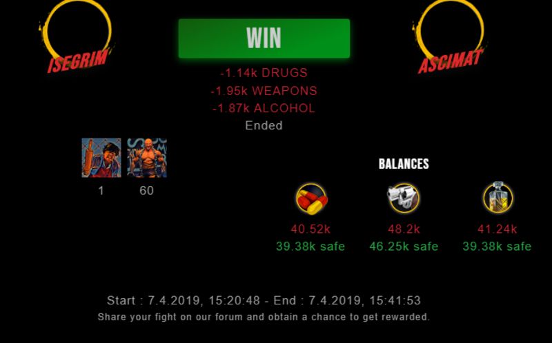 Check my latest fight ! isegrim vs ascimatisegrim (42)in #drugwars-fight • 7 years ago #gaming #fight #dw