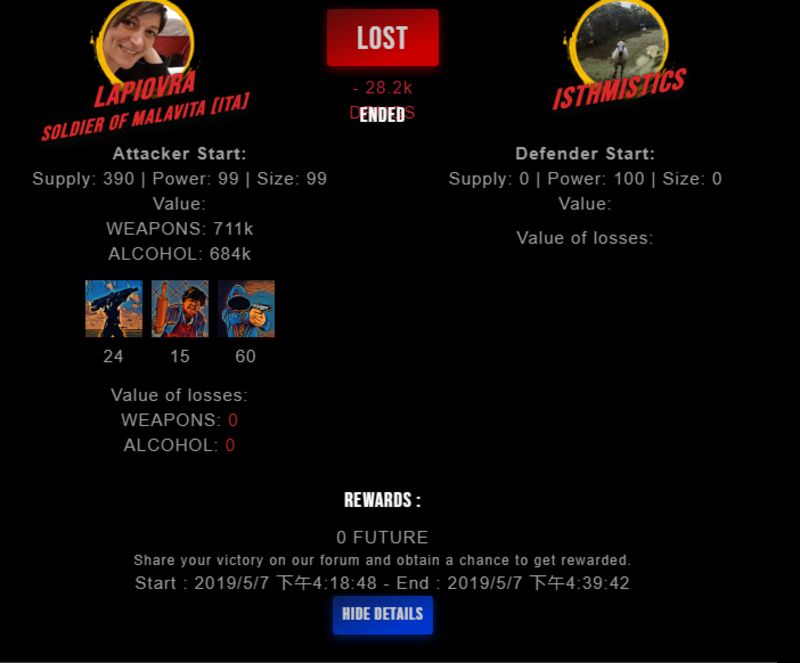 Check my latest fight ! lapiovra vs isthmisticsisthmistics (26)in #drugwars-fight • 7 years ago #gaming #fight #dw
