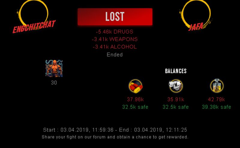 Check my latest fight ! engchitchat vs jafajafa (48)in #drugwars-fight • 7 years ago #gaming #fight #dw