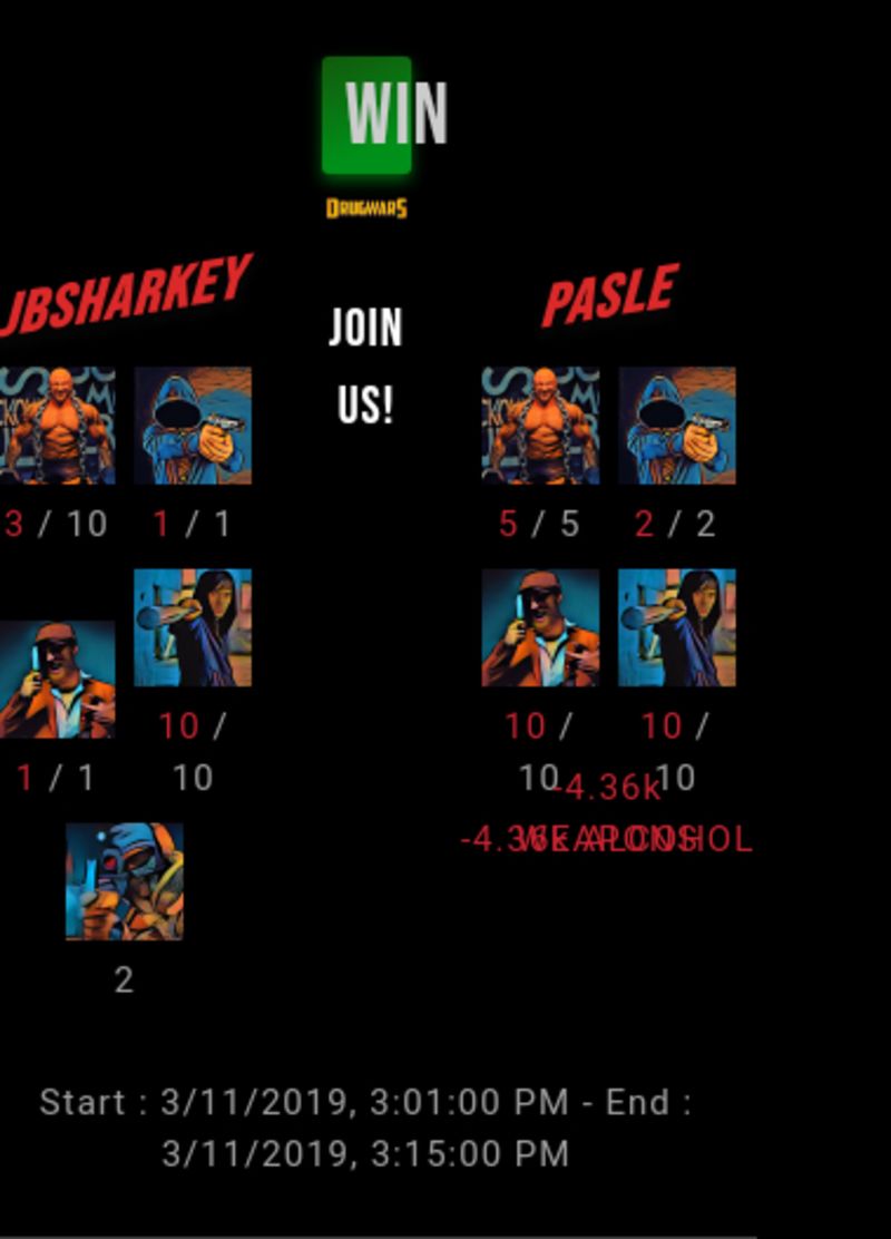 Check my latest fight ! jbsharkey vs paslejbsharkey (39)in #drugwars-fight • 7 years ago #gaming #fight #dw