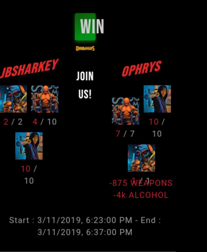 Check my latest fight ! jbsharkey vs ophrysjbsharkey (39)in #drugwars-fight • 7 years ago #gaming #fight #dw