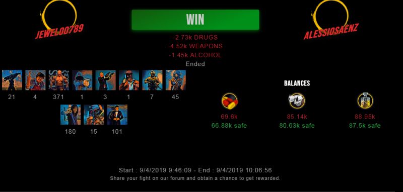 Check my latest fight ! jewel00789 vs alessiosaenzjewel00789 (42)in #drugwars-fight • 7 years ago #gaming #fight #dw