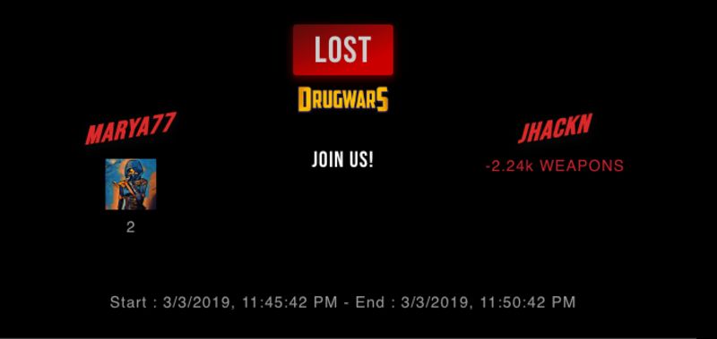 Check my latest fight ! marya77 vs jhacknjhackn (41)in #drugwars-fight • 7 years ago #gaming #fight #dw