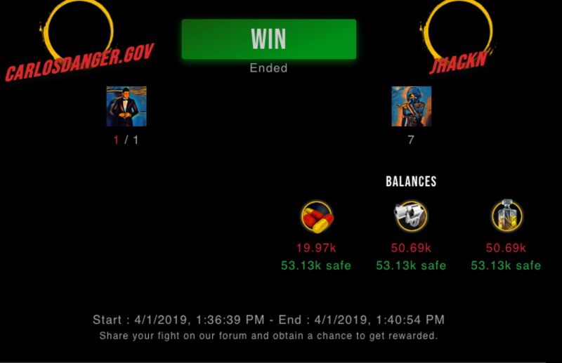 Congratulations @jhackn ! Your fight received an upvote of 1.4% from the King Dealer as incentive for your activity and as a gratitude for your support to the game.