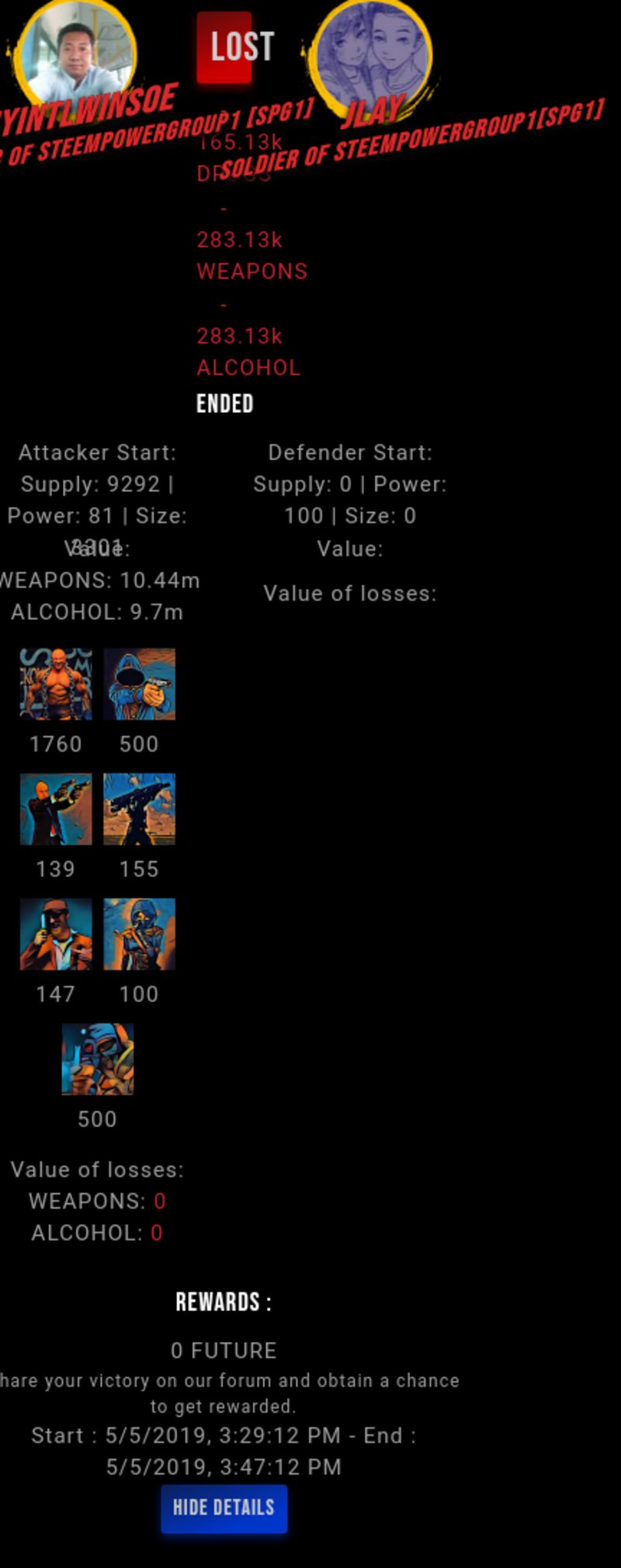 Check my latest fight ! myintlwinsoe vs jlayjlay (40)in #drugwars-fight • 7 years ago #gaming #fight #dw